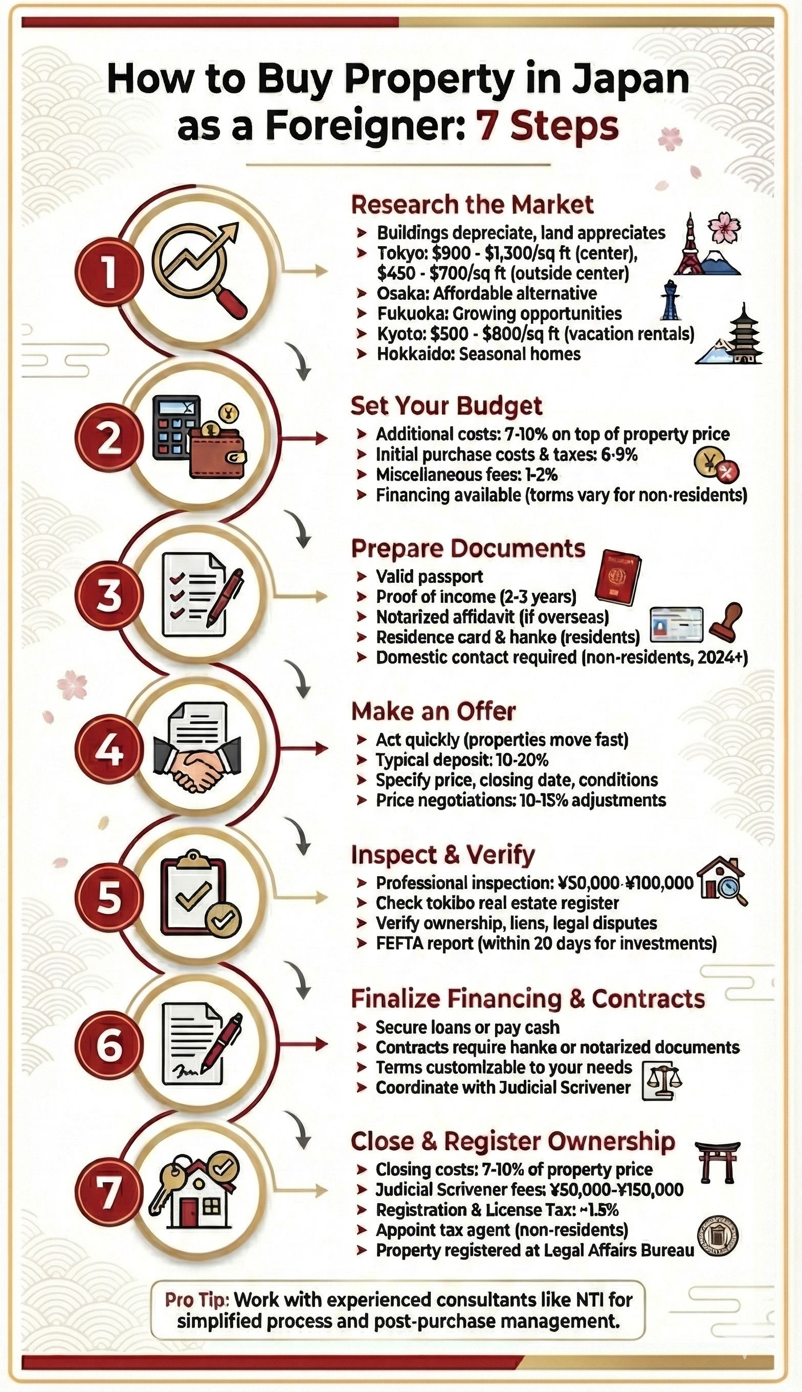 Pro Tip: Work with experienced real estate consultants like Nippon Tradings International (NTI) to simplify the process, especially for legal and post-purchase management.